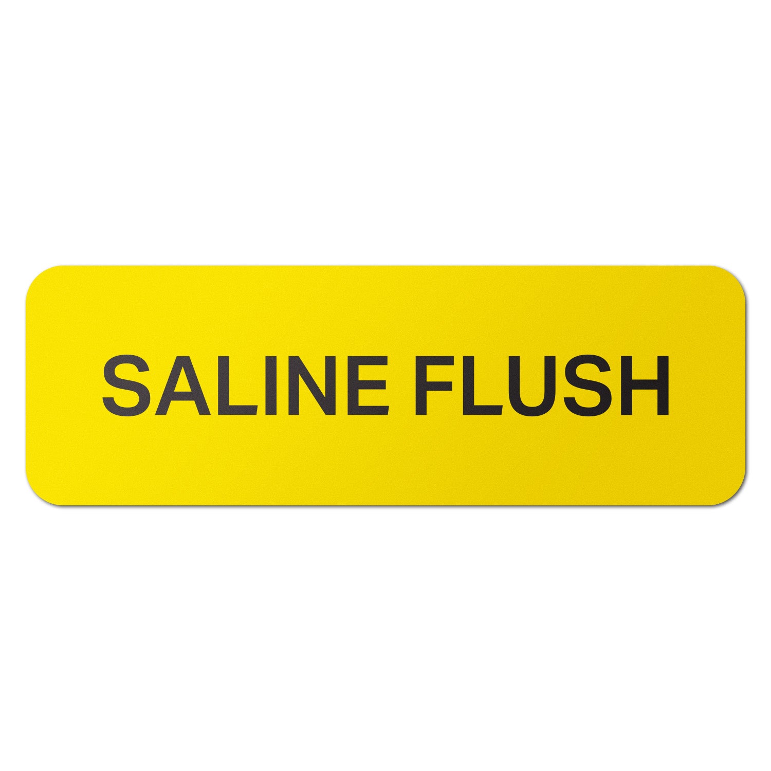 Easily identify medical supplies with these 1.5 x 0.5 Saline Flush stickers. Featuring bold black text on a bright fluorescent yellow background, they provide quick visual recognition in busy healthcare environments. designed for clinical organization, these self adhesive sheet labels stick securely to clean surfaces and remove cleanly to support safe and efficient patient care.