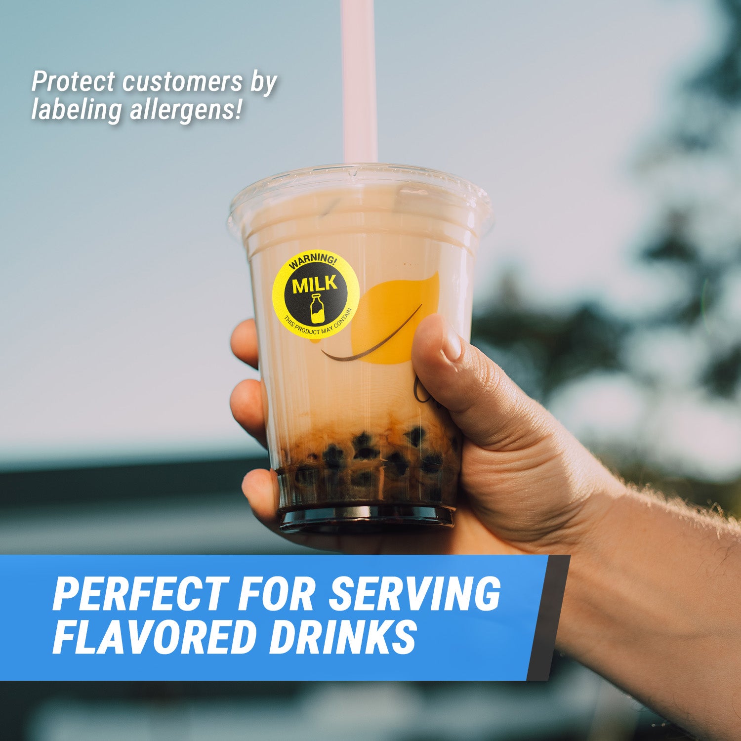- Clear Message: Bold "MILK" warning with yellow and black QUANTITY ensures immediate visibility for easy identification.