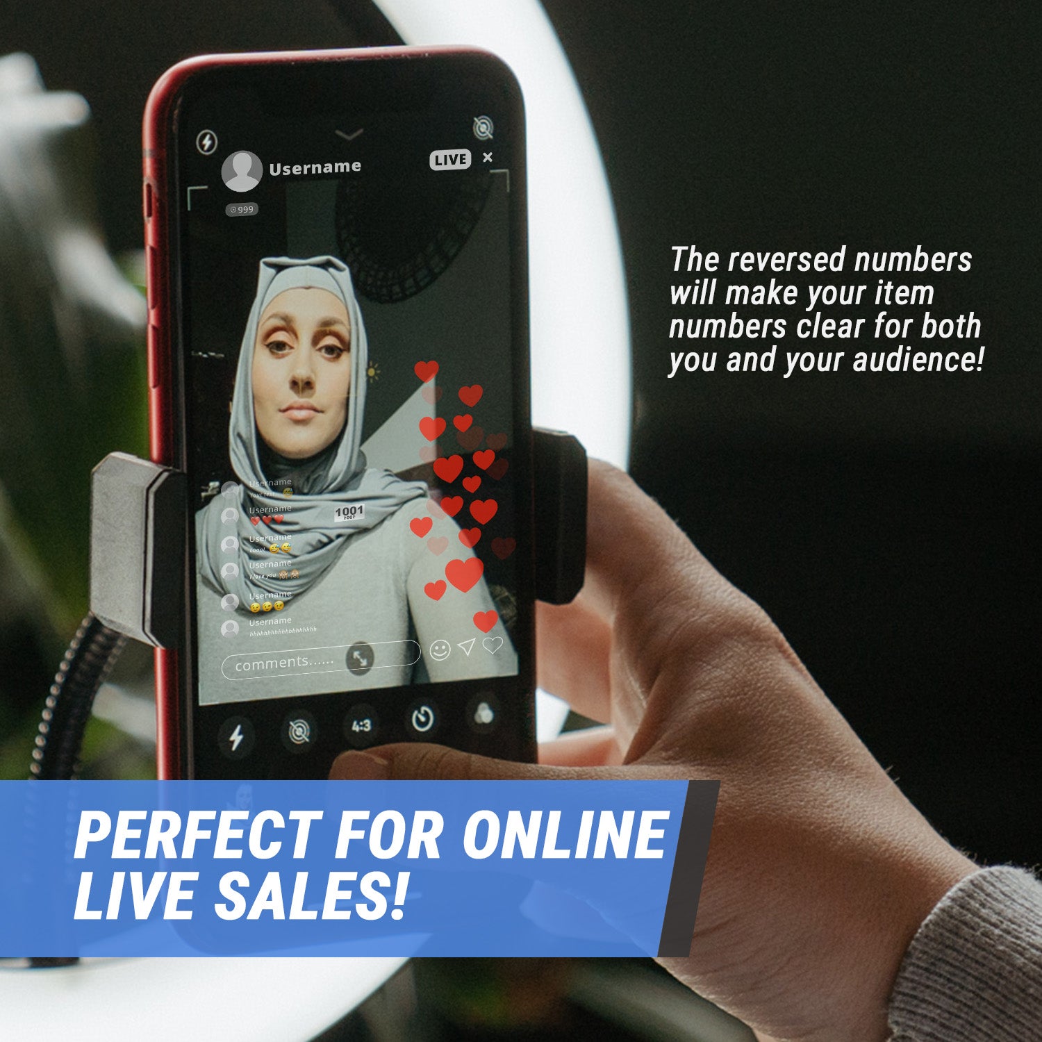 - Live Sales Events: Allows viewers to clearly see numbers on camera during live auctions or sales.