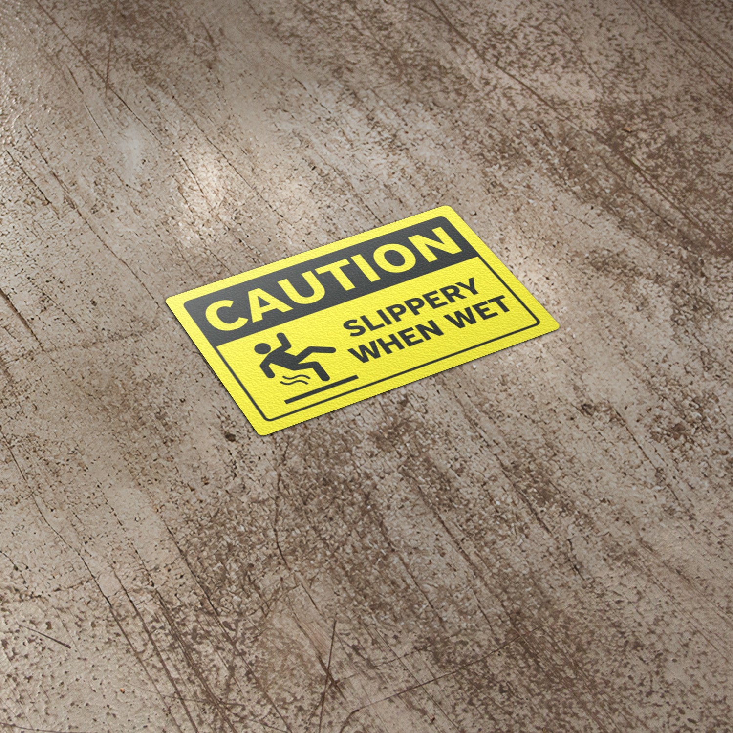 Help reduce slip and fall risks with this compact 6 x 4 *Caution: Slippery When Wet* warning sticker designed for warehouses, retail stores, and splash prone areas. Made from durable textured non slip vinyl with waterproof and UV resistant protection, it delivers reliable indoor and outdoor hazard visibility with fast peel and stick installation.