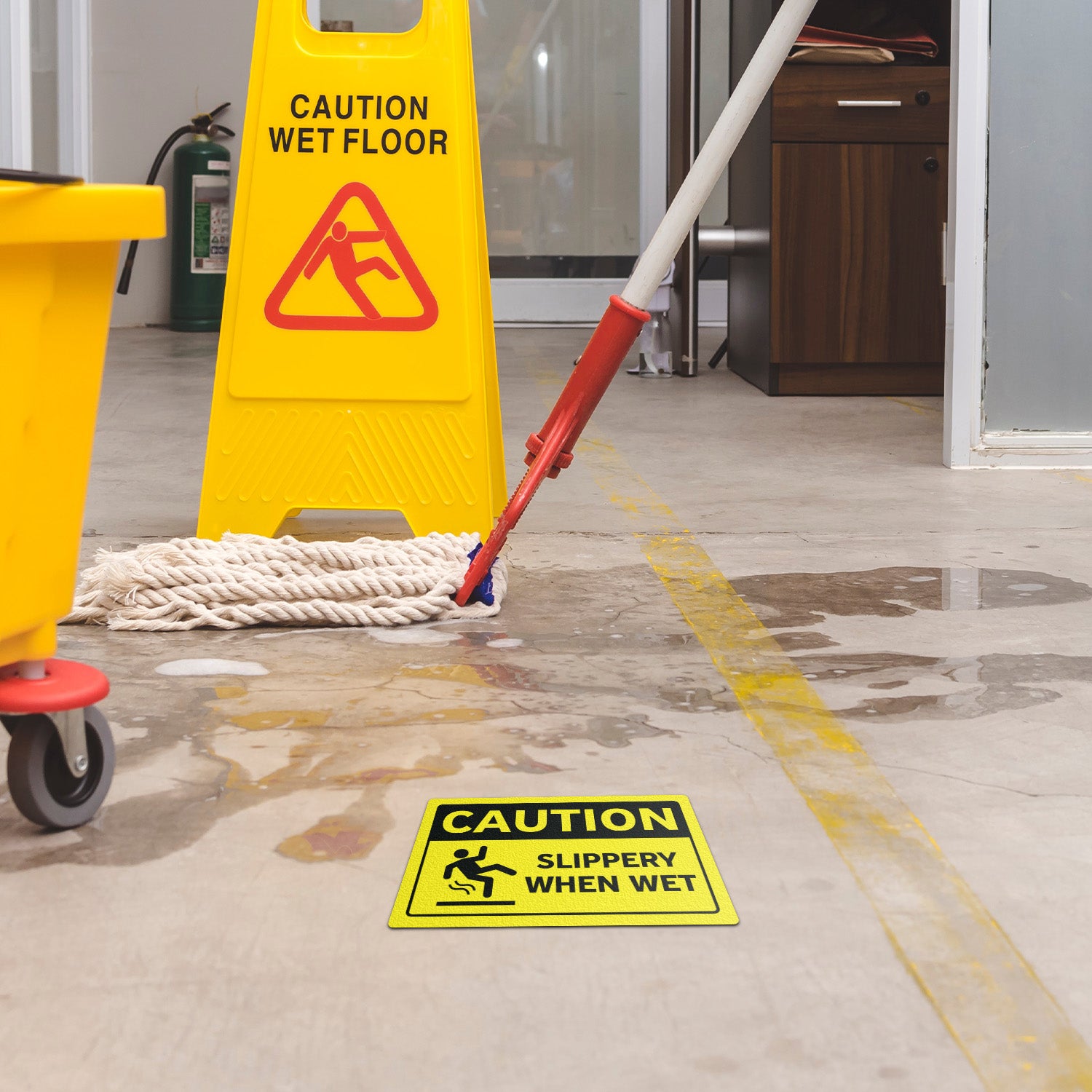 - Clear Hazard Warning: Displays bold, easy to read * Caution: Slippery When Wet* text to immediately alert employees, customers, and visitors of potential slip risks.